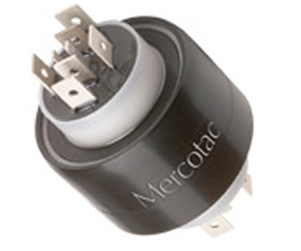 EmpaquetamientoLos conectores rotativos Mercotac usan un principio de diseño único a diferencia del contacto deslizante de escobilla de un anillo colector. La conexión se realiza mediante un área de metal líquido unido molecularmente al contacto, que proporciona una conexión estable de baja resistencia. Durante la rotación, el fluido mantiene la conexión eléctrica entre los contactos sin que se produzca ningún desgaste.