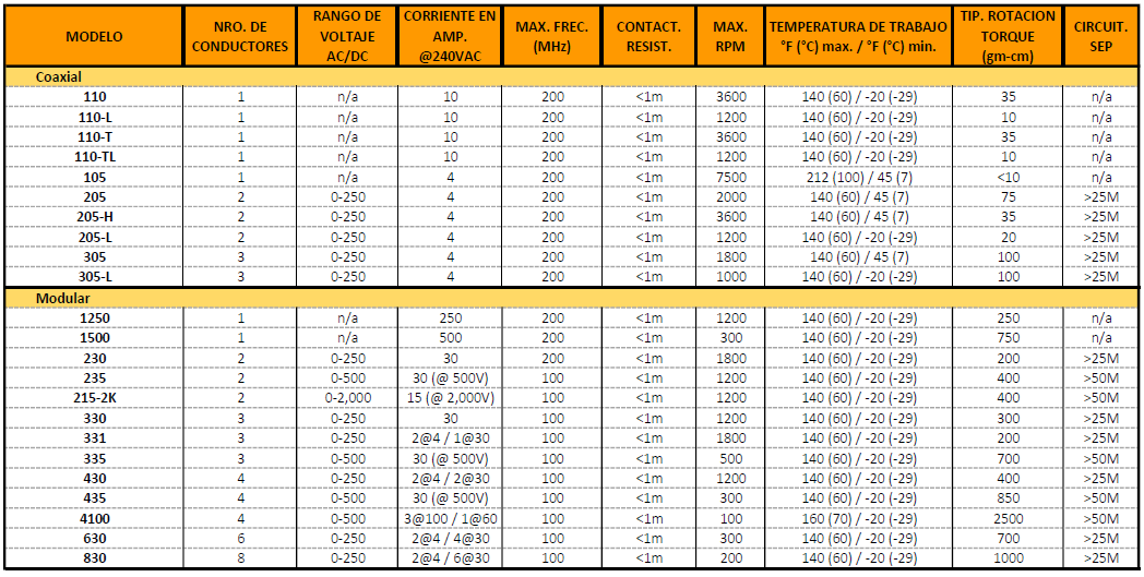 Tercero, los conectores Mercotac no degradan la señal con el tiempo, lo cual sucede con los anillos colectores.